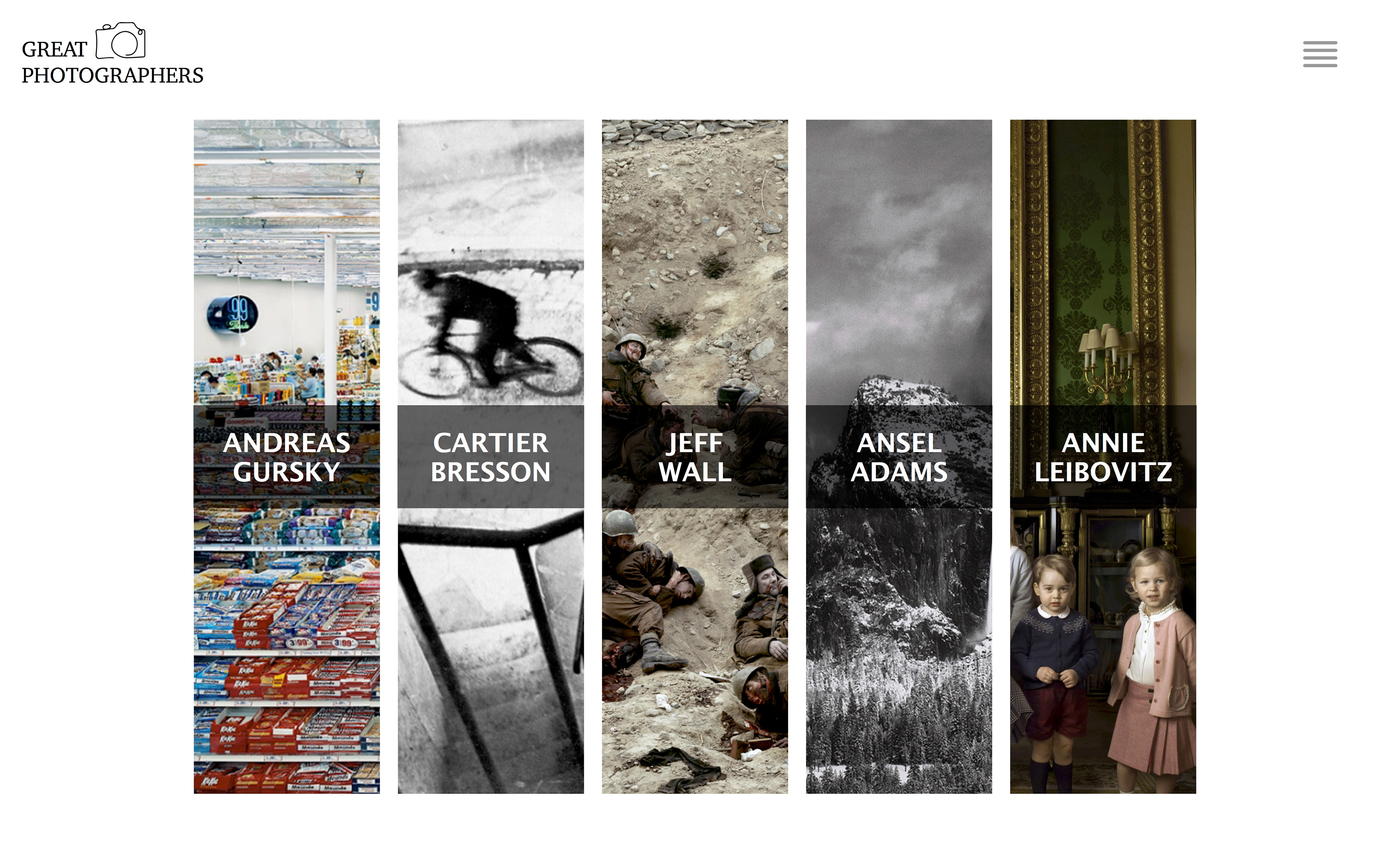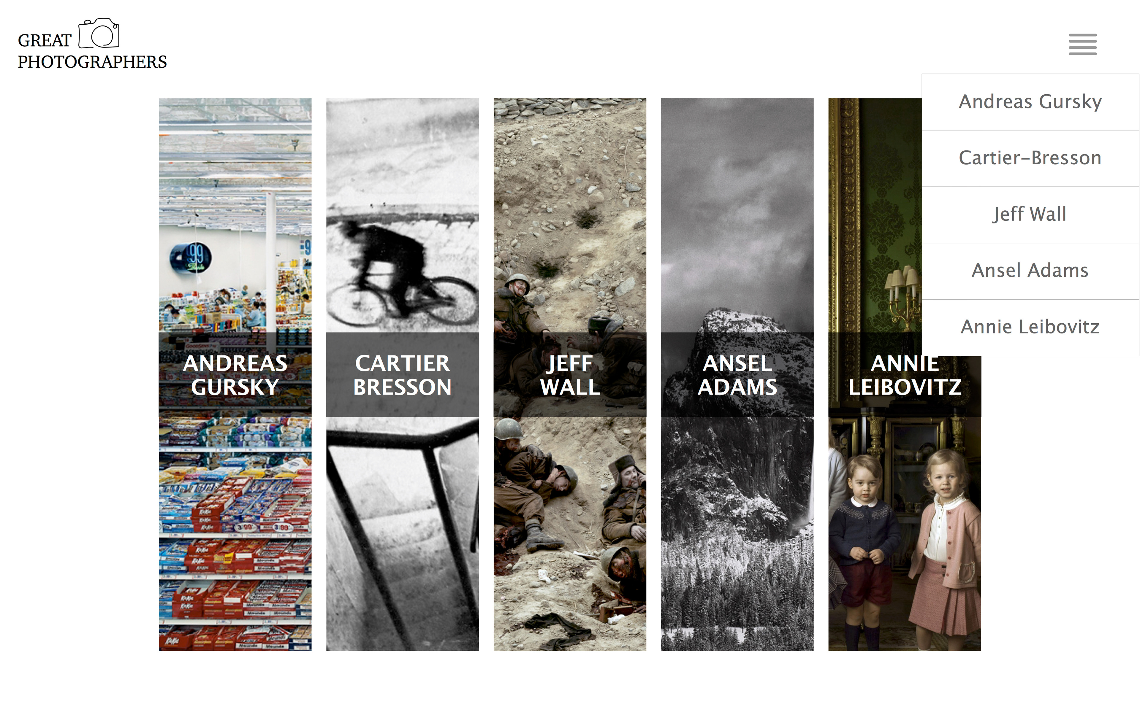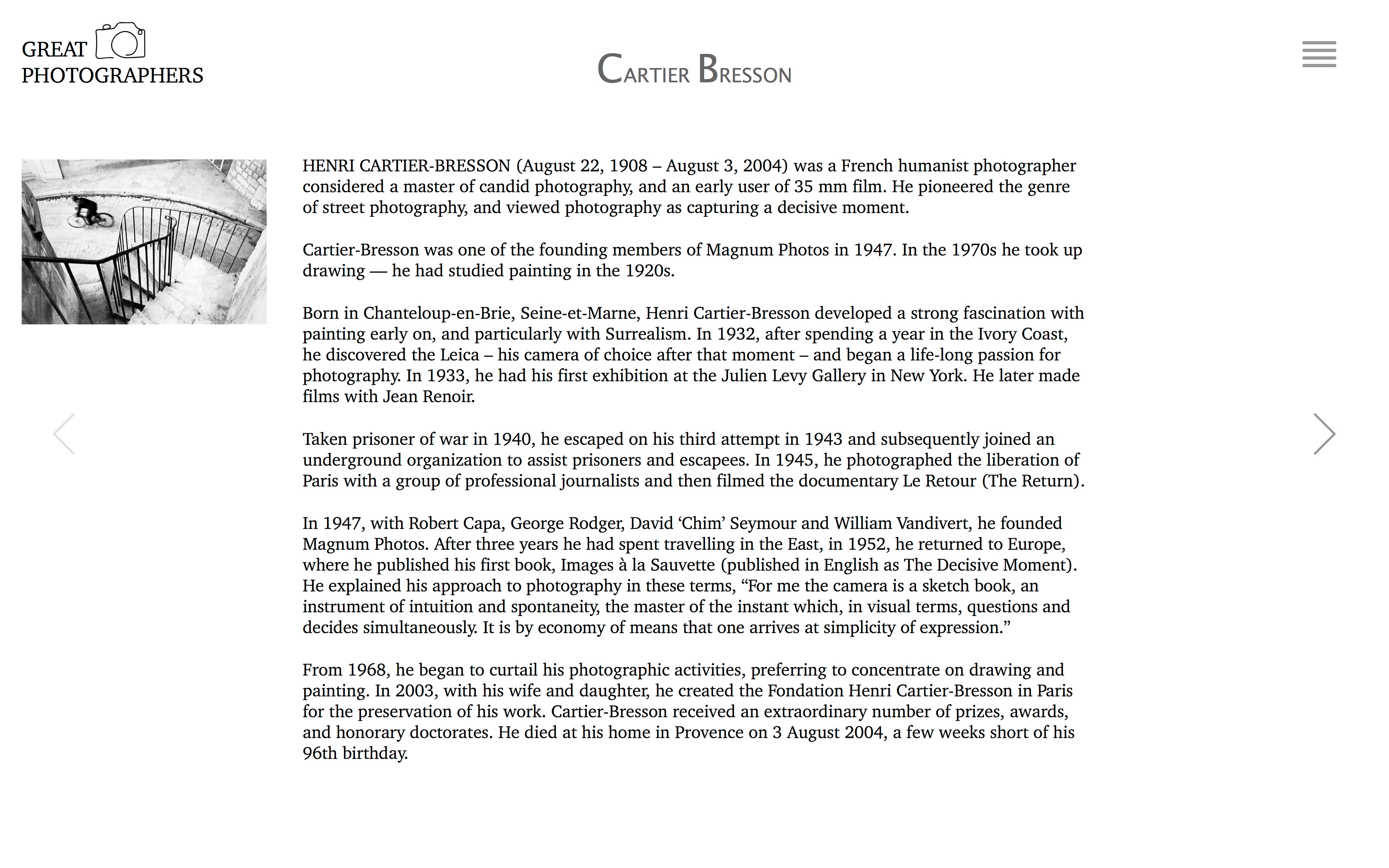 Creation of a user interface prototype for the Great Photographers Exhibition.