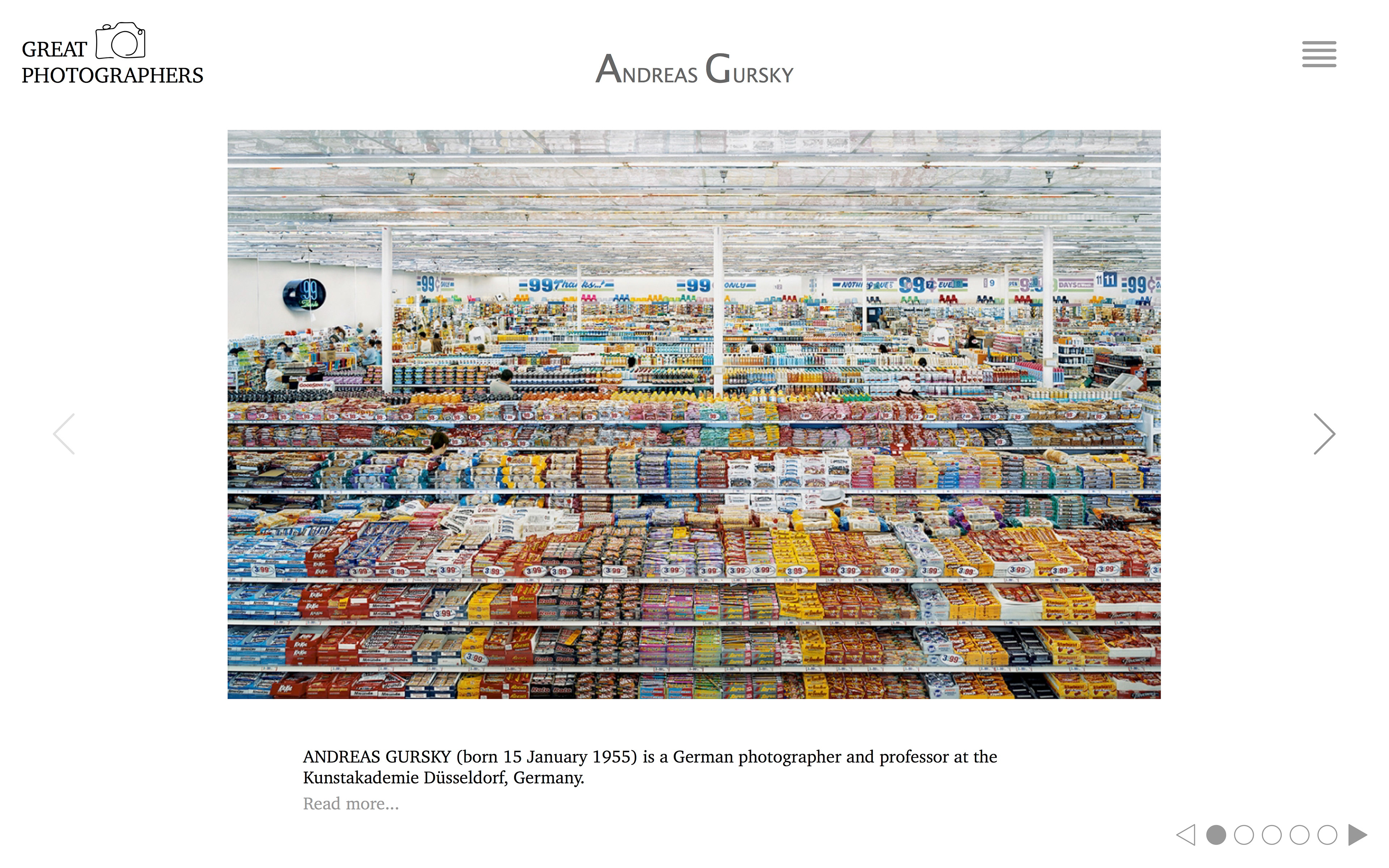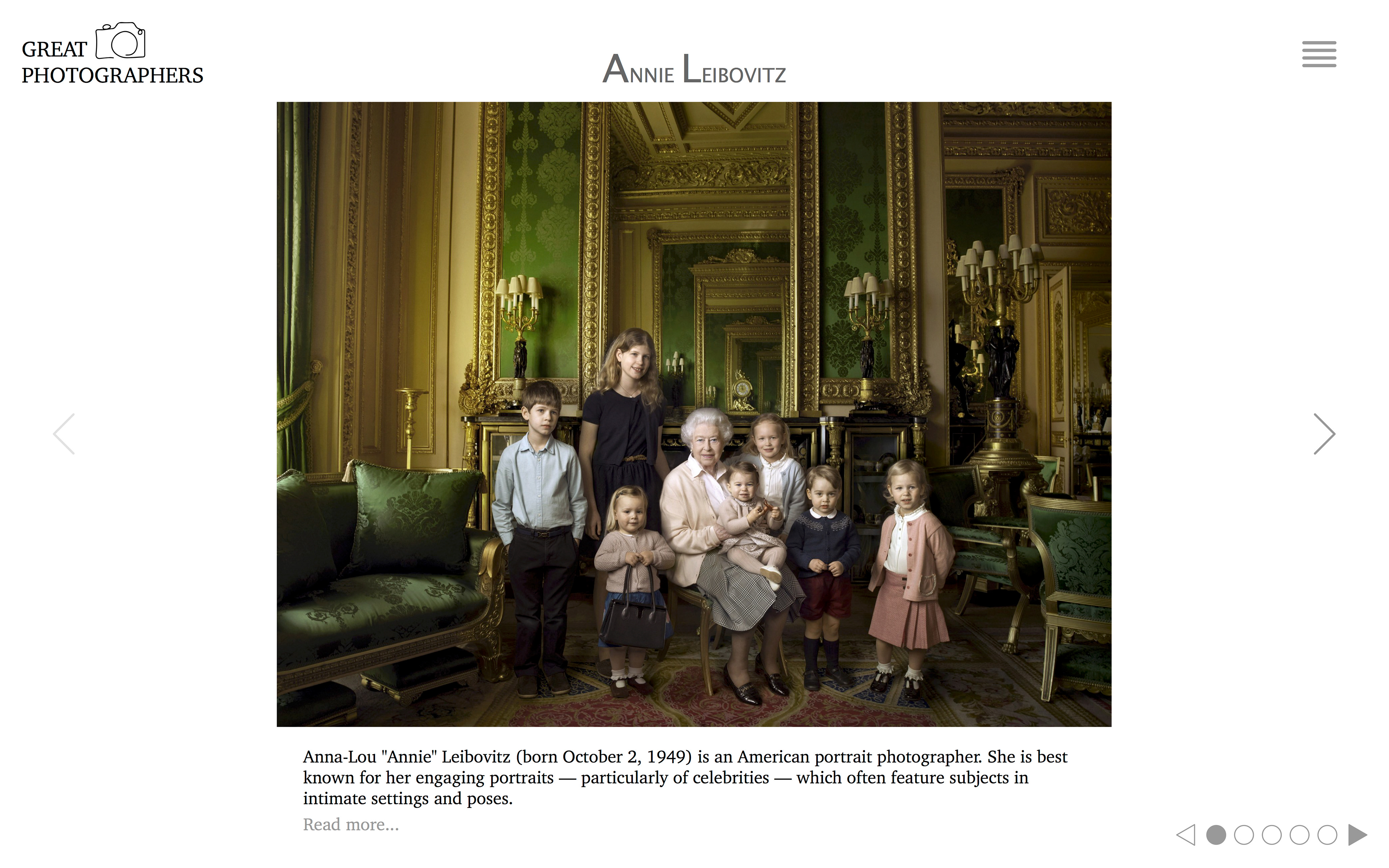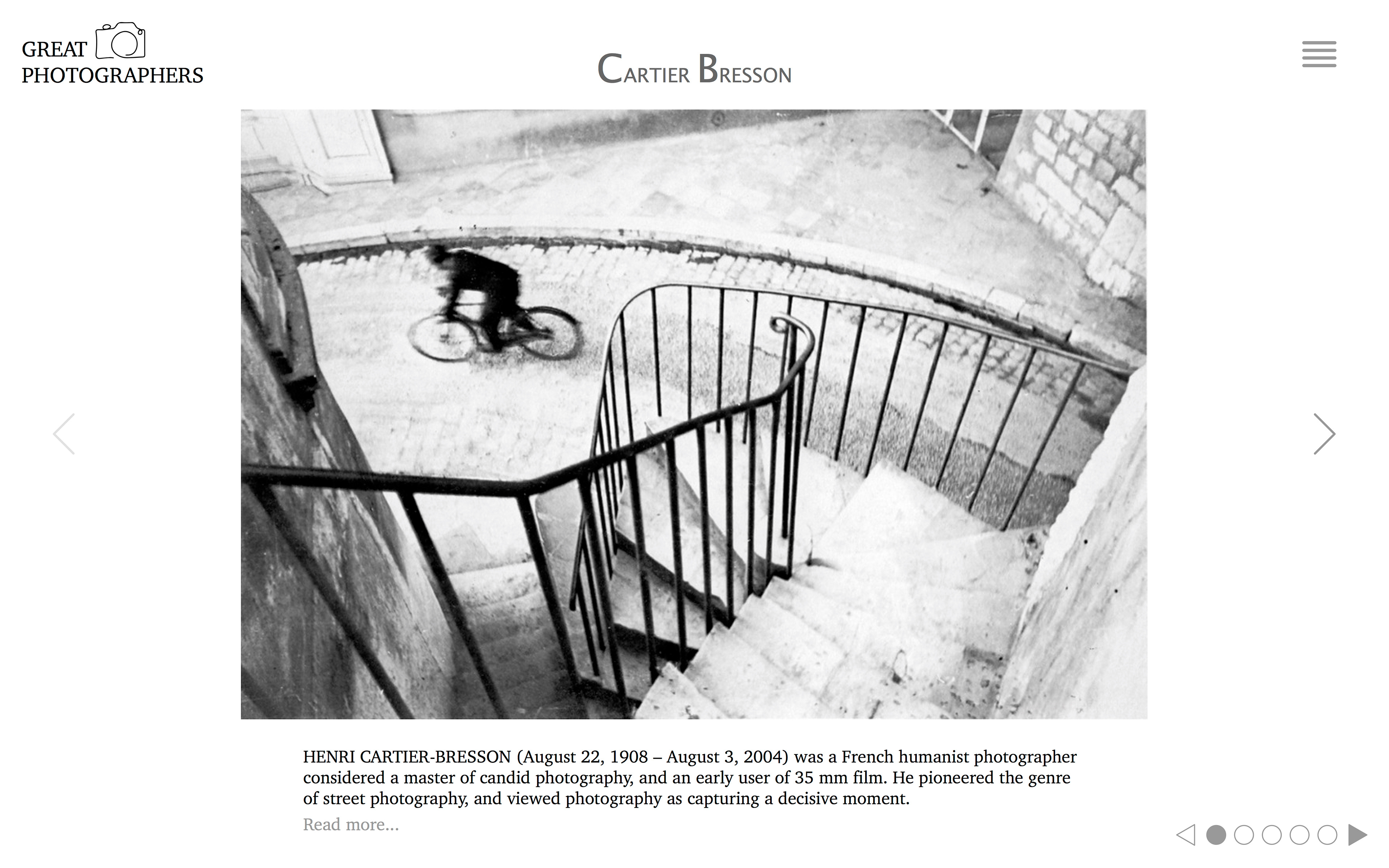 Creation of a user interface prototype for the Great Photographers Exhibition.